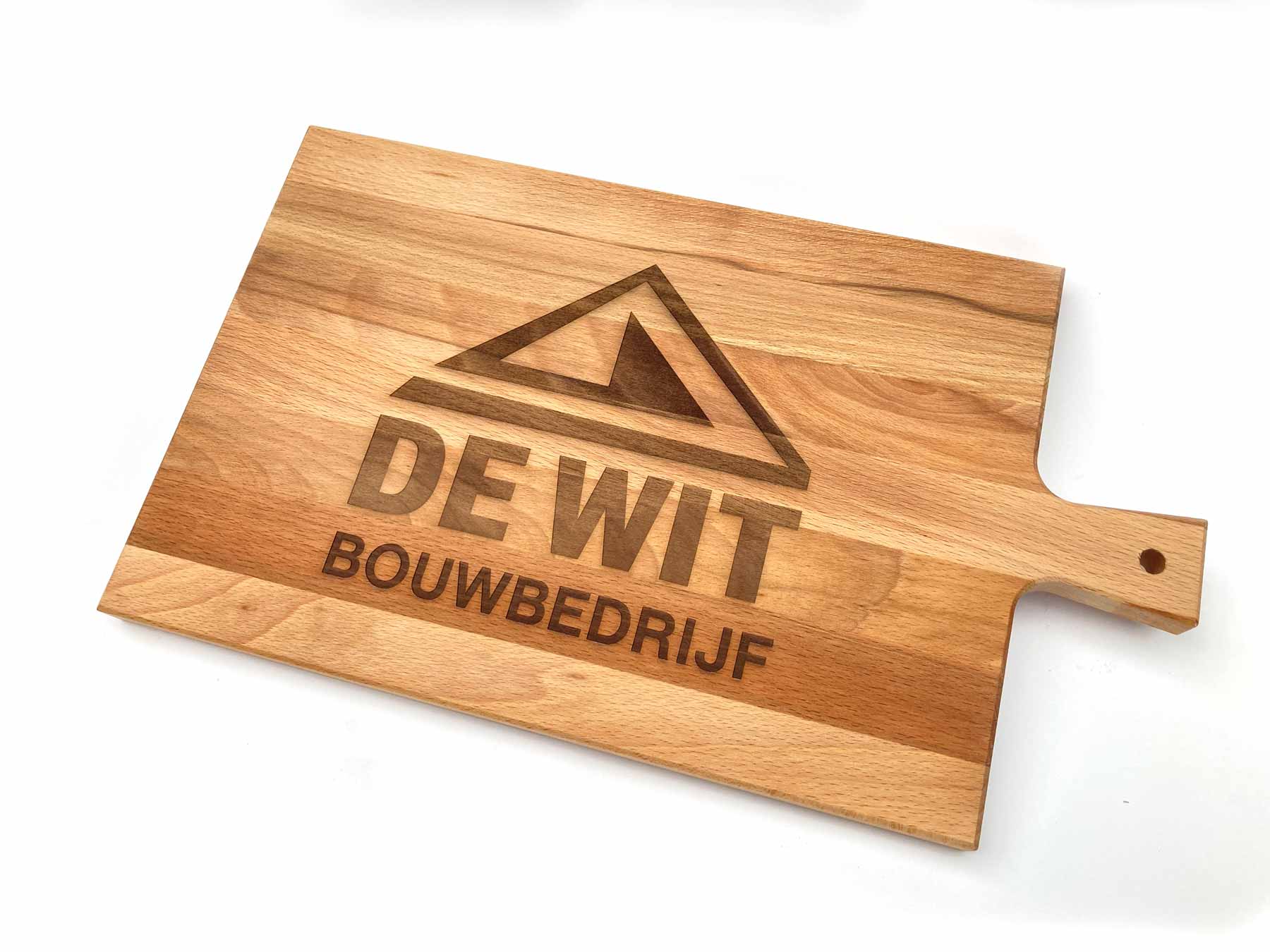 Wil je een uniek en op maat gemaakt cadeau? Bij ons kun je houten snijplanken & Borrelplanken laten graveren met tekst, logo of afbeelding.